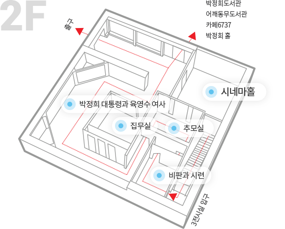 박정희 대통령이 재임기간 겪었던 숱한 비판과 시련들을 당시 신문기사를 통해 자세히 알 수 있도록 연출하였고, 대통령 내외분을 위한 추모공간과 흔적과 자취를 느낄 수 있는 사진과 유물을 만나 볼 수 있으며, 대통령의 인간적인 면을 엿 볼 수 있도록 집무실을 재현하였다. 특히 6737일간의 여정을 사진 영상으로 연출하여 잔잔한 감동과 그리움을 느낄 수 있는 시네마홀이 마련되어 있다.